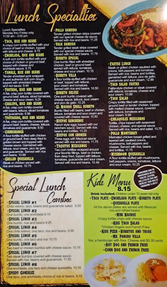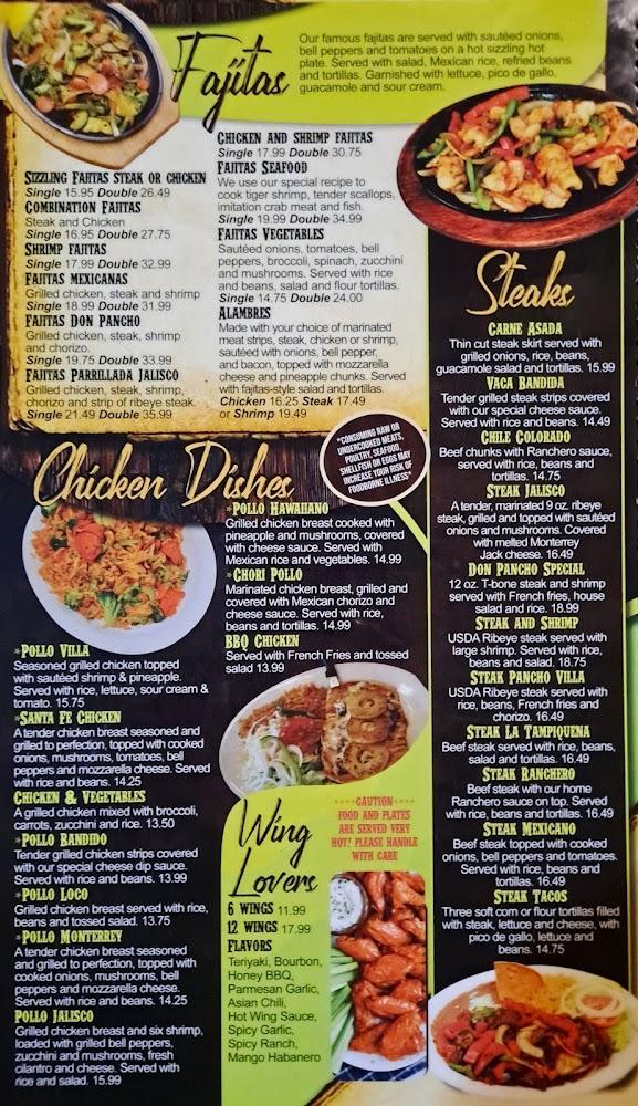 Don Pancho Villa features a menu filled with fresh, traditional Mexican dishes. Guests can start with an appetizer like handmade guacamole or a hearty tortilla soup. For lunch or dinner, the burritos and fajitas stand out with rich flavors. Carnitas and Chile Verde showcase the restaurant’s authentic offerings. Don't overlook the diverse drink options, including cocktails and local beers. The restaurant even has a kid's menu, ensuring dining for all ages. With everything priced reasonably, diners leave satisfied and ready to return for more.
